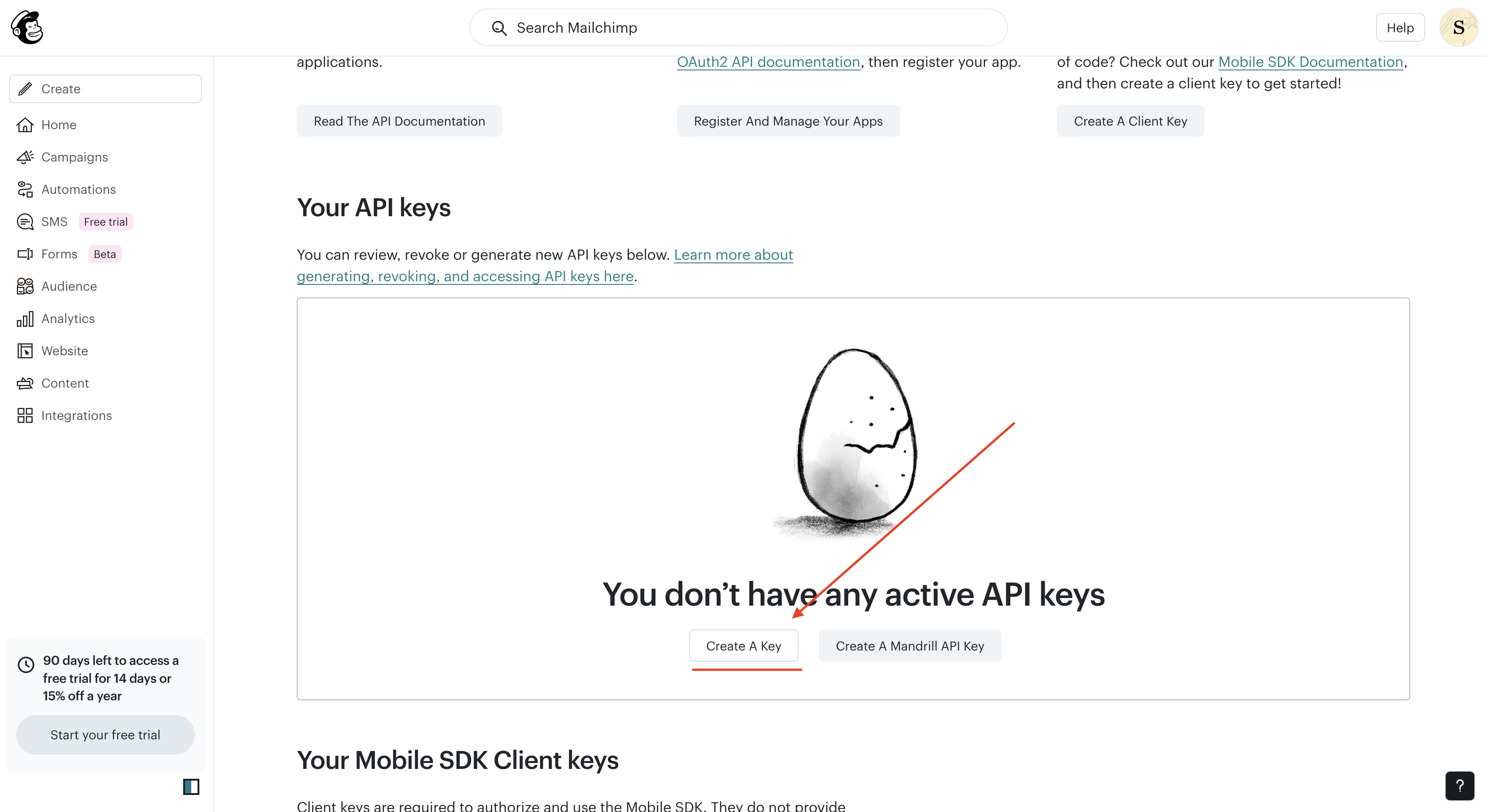 ⚠️ Important: Store this key securely as Mailchimp won't show it to you again in full after you leave this page
