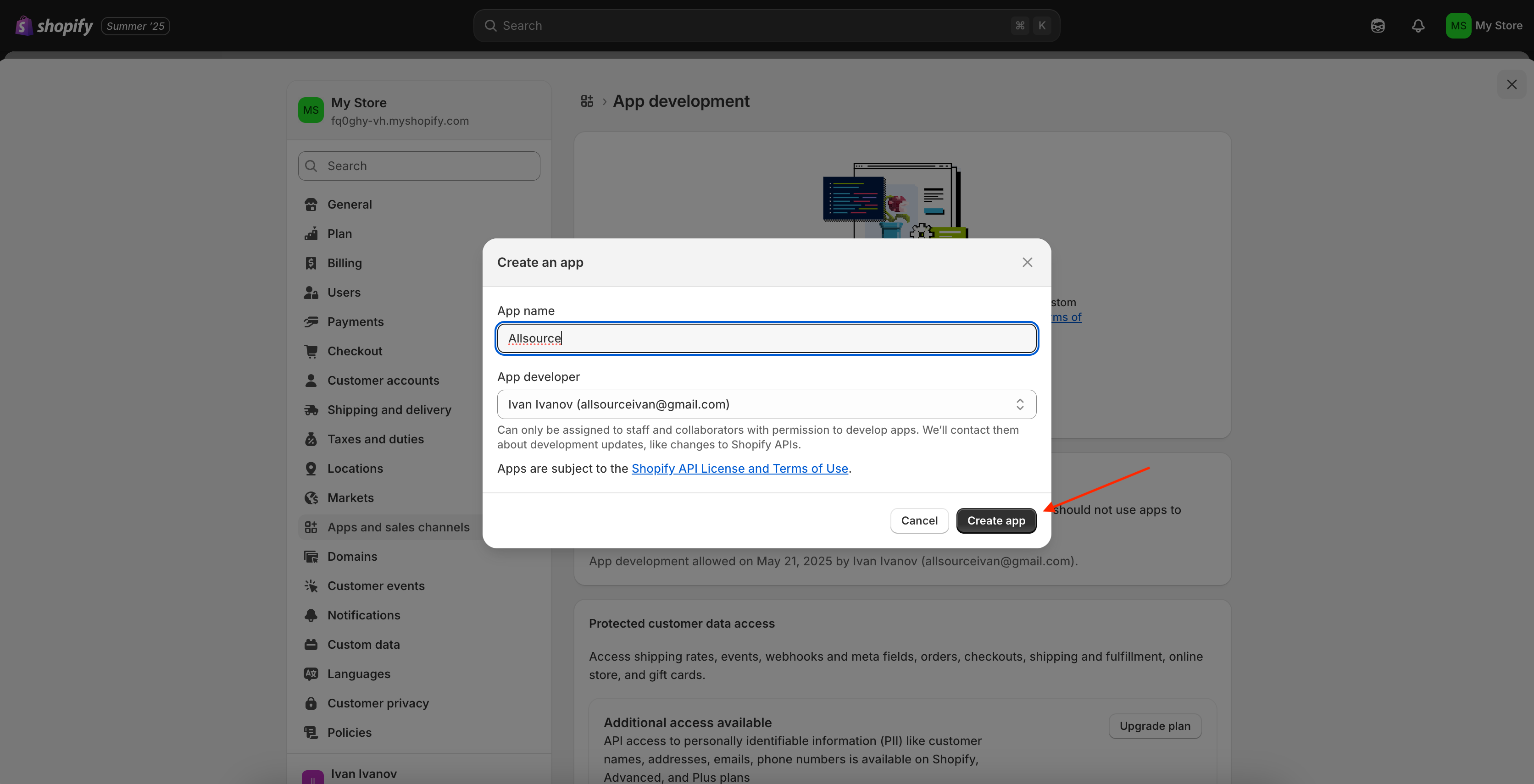 Click Create app to proceed.