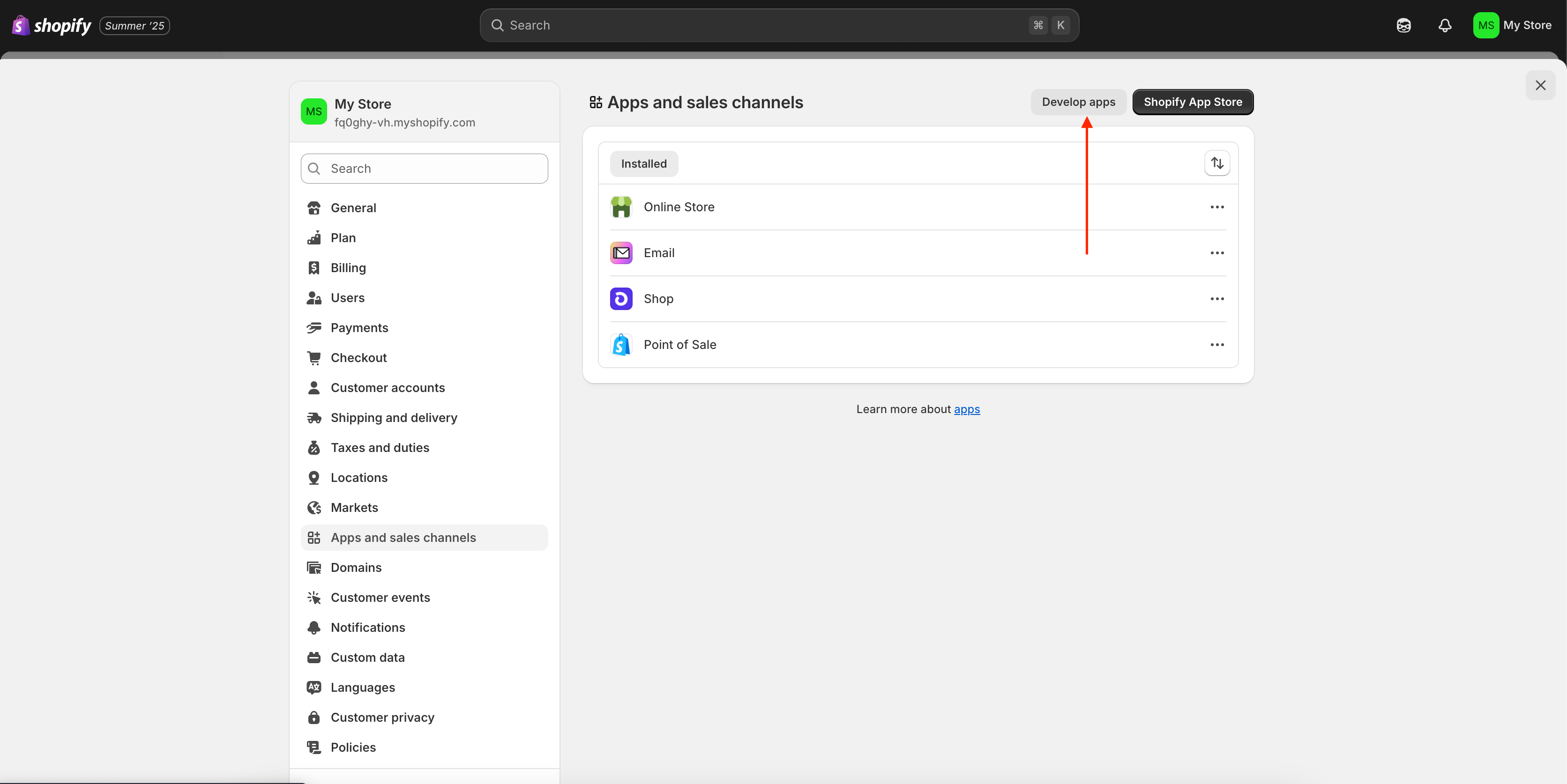 Navigate to Settings > Apps and sales channels.