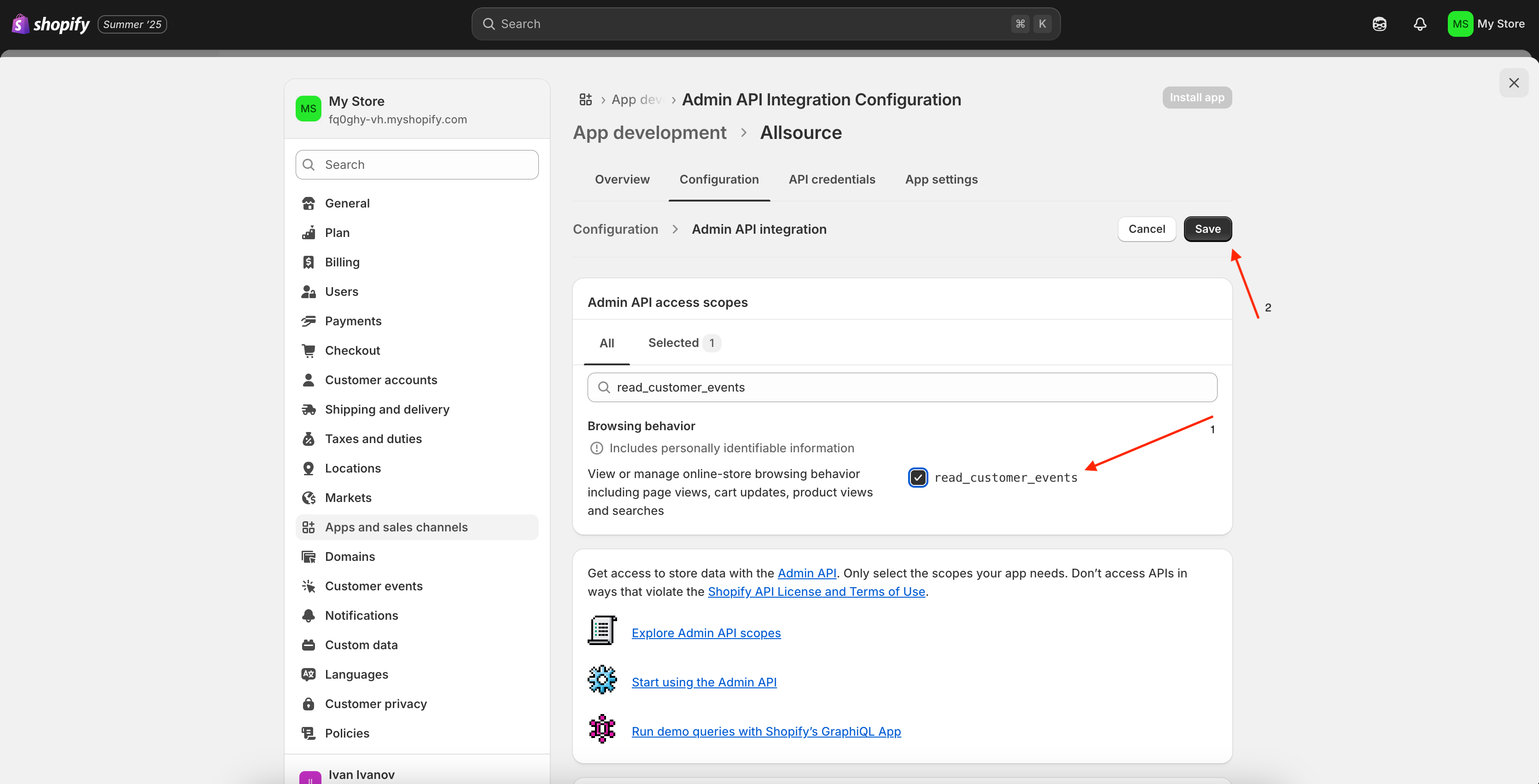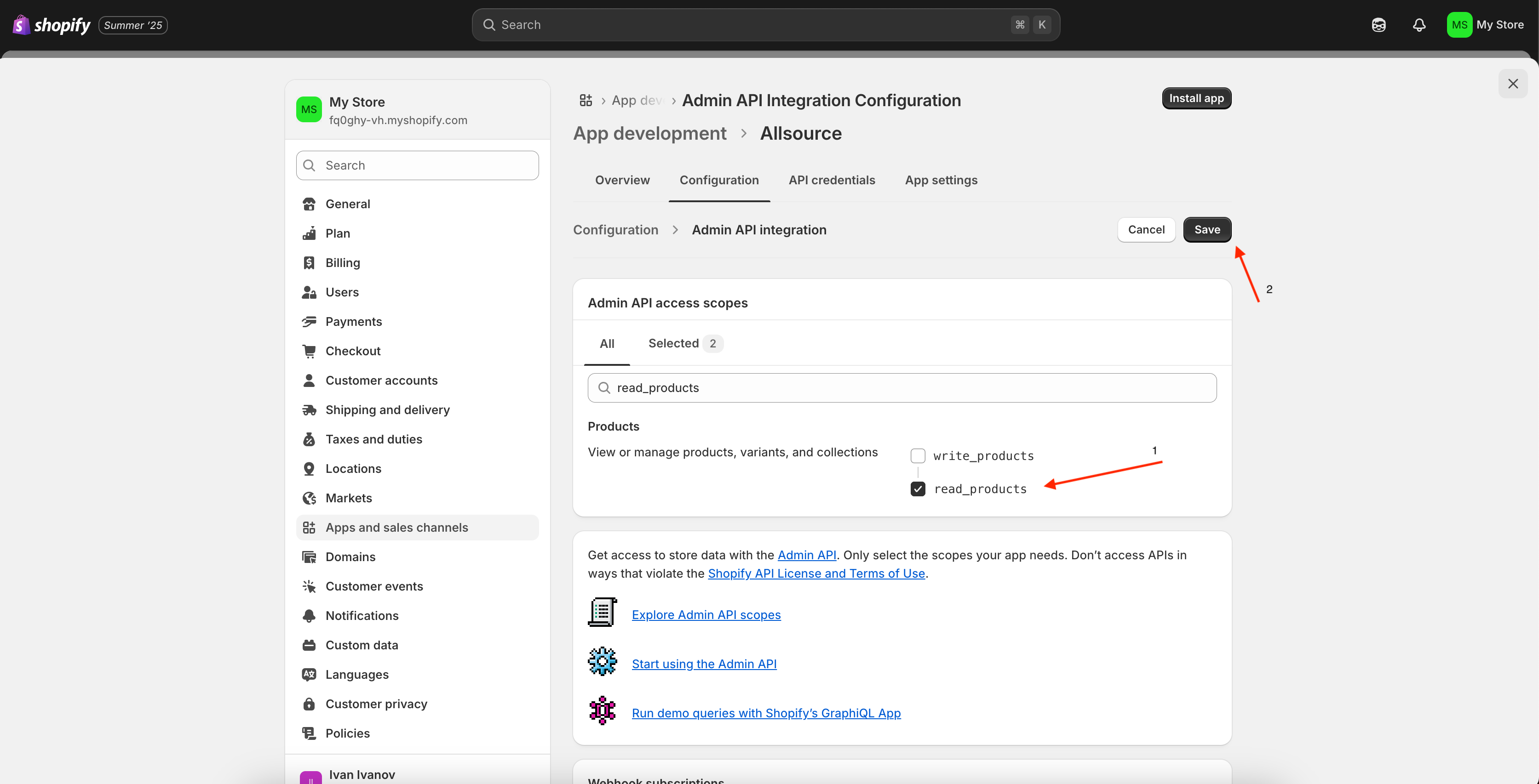 Click Configure next to Admin API integration.