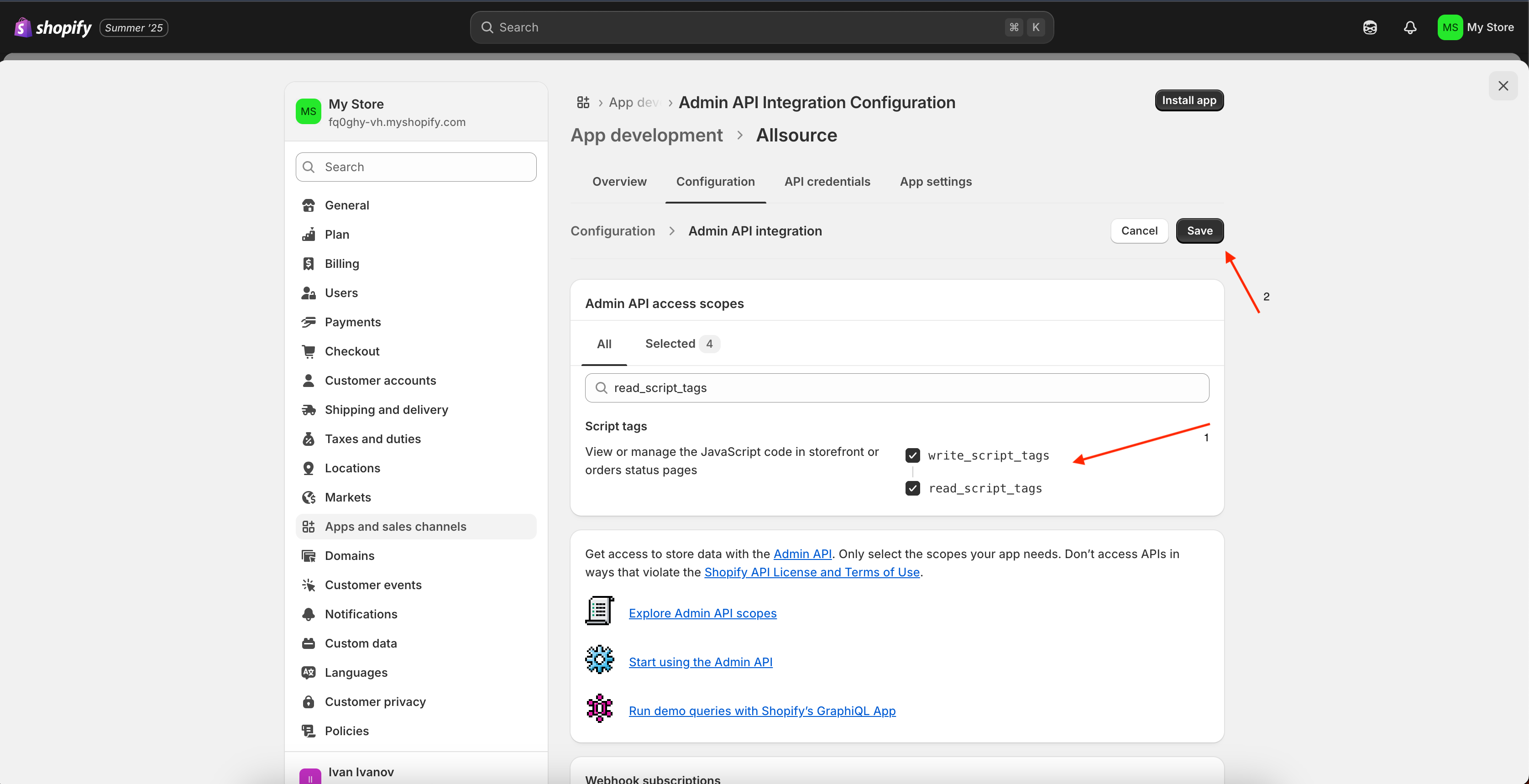 Once all desired scopes are selected, click Save to apply the changes.